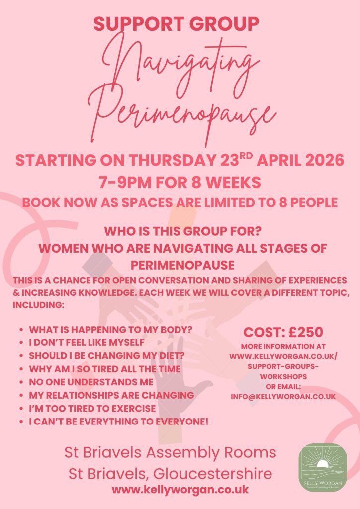 'Navigating Perimenopause' is a new support group aimed at women who are experiencing a whole range of symptoms related to entering perimenopause. Facilitated by Nutritionist & Therapeutic Counsellor Kelly Worgan, the group is an opportunity for women to come together to share and create a sense of belonging in a world that can feel confusing, upsetting and unfamiliar.